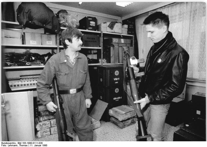 The Central Round Table sent directives first disarming the security services headquarters on January 11, 1990 and finally dissolving the remnants of the organization two days later. While the People’s Police and dissident groups oversaw the removal of the extensive arsenal at the Normannenstrasse headquarters of Stasi, the the massive collection of records created over the life of the GDR were still in the hands of the former agents. On January 15, a demonstration against the security services organized by the civic group New Forum spun out of control and protesters overran the guards to occupy what had been the heart of Stasi power. The occupation stopped the agents from further destroying files, but only after around 45 million pages had been shredded or burned. Demonstrators set out through the massive complex simultaneously vandalizing offices and preserving the still vast remaining collection of documents.